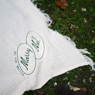 Josh made her a custom blanket for their surprise engagement picnic. #ifhewantedtohewould